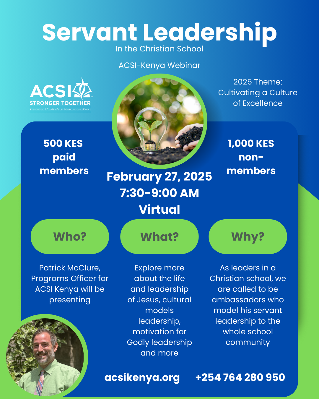We hope you will be able to join us for the first webinar of 2025! Our Programs Director, Patrick McClure will be presenting on Servant Leadership